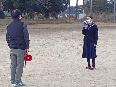 続いて行われた1学期始業式では、代表生徒が新年度の抱負を発表しました。「授業に集中し部活動との両立を頑張りたい」、「受験に向けて勉強を頑張る」、「ボランティア活動を毎日行う」、「生徒会として体育大会や生徒総会に向け頑張る」といった、1年間の目標や決意が聞かれました。