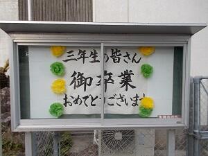 また、卒業式については、3月16日(月)に卒業生と保護者(同居している者に限る)、教職員のみで、規模を縮小し、時間を短縮して実施するよう通知がありました。詳しくは、来週の家庭への訪問(月曜日から木曜日の午前9時から午後4時の間)で配付する文書及び安全安心メール、ホームページでお知らせいたします。