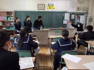 2月22日(火)に、本年度最後の参観日が学年別に時間をずらして行われました。2年生は、立志式及び総合的な学習の時間の発表を実施しました。立志式では、生徒一人ひとりが、色紙に漢字1文字を書き、「色紙に込めた思い」として、これからの決意を述べてくれました。また、総合的な学習の時間にSDGsについて調べたことをグループごとに発表しました。新型コロナ感染拡大防止の対応を行いながらの実施でしたが、緊張感に包まれつつ、学びのある立志式となりました。