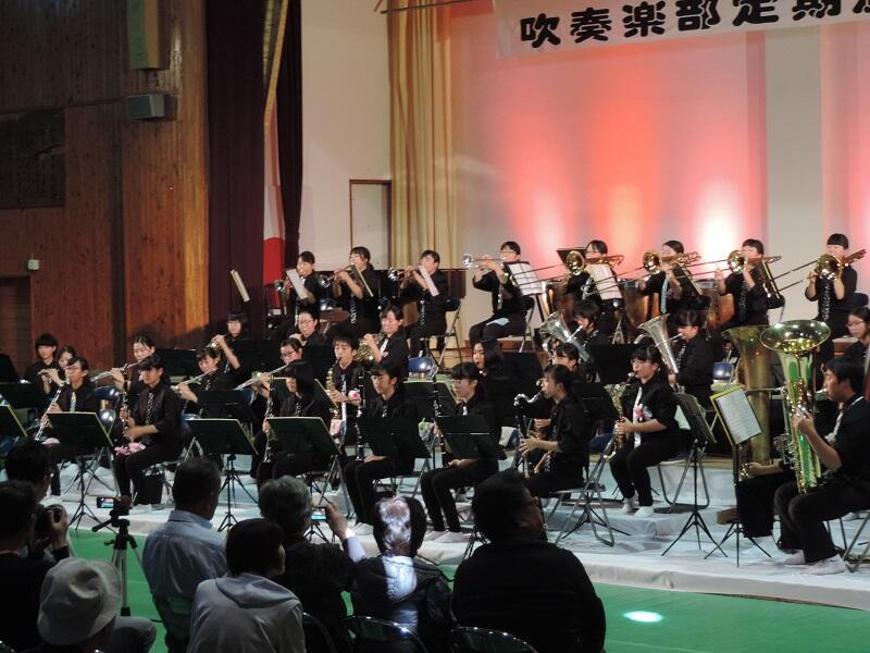 10月20日(土)14:00~吹奏楽部による定期演奏会が行われました。これまで県吹奏楽コンクールでは見事2年連続となる「金賞」受賞。夏祭りでの演奏等、実績を残し、周りに感動を与えてくれました。今回の演奏会でも迫力ある演奏と様々な楽器の音色が溶け合う美しい響きを聴かせてくれました。来場者はおよそ270名でした。吹奏楽部の皆さん、後援会の皆さんありがとうございました。お疲れ様でした。
