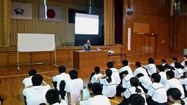 キャリア教育の視点に立ったこの活動は、本校の学校運営協議会委員が、山之口町にゆかりのある方に講演を依頼するというものです。