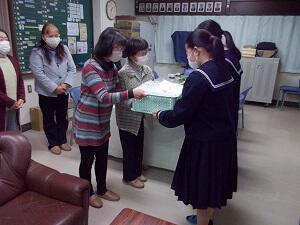 3月12日(金)に、山之口地区の更生保護女性会の皆様から、卒業生に記念品をいただきました。