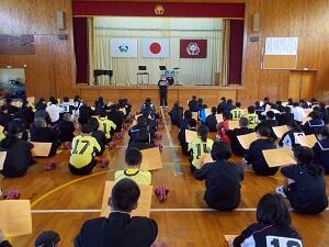 4月14日(水)に、部活動紹介を行いました。各部5分以内の時間を使って、日頃の練習の様子などを紹介してくれました。本校では、野球部、サッカー部、男子ソフトテニス部、女子ソフトテニス部、女子バレーボール部、女子ソフトボール部、吹奏楽部の7部が活動してます。