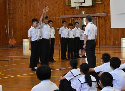 7月5日(金)に県中学校総合体育大会と県吹奏楽コンクールの推戴式を行いました。