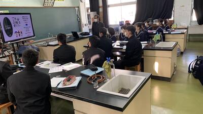 今年はぜひ再開したいと思い、夏に計画されていたのですが、コロナの感染が拡大したため2月に実施することになりました。1月18日(水)には、まちづくり協議会の方から生徒会役員に弥五郎塾や山之口地区の特徴について説明をしていただきました。