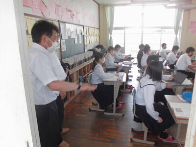 協議の前に、デジタル教科書を使った授業など、全学級の授業を参観していただきました。