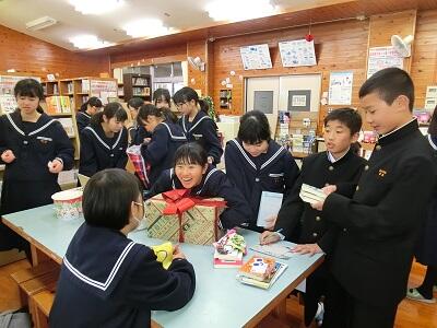 先週から「クリスマスパーティ In 図書室」と題して、図書館祭りが行われています。学級対抗のクリスマスツリーコンテストやくじ引き、クイズに答えて、プレゼントゲットなど多彩な企画で毎日図書室が盛り上がっています。鷺坂先生・図書委員の皆さんありがとうございます。