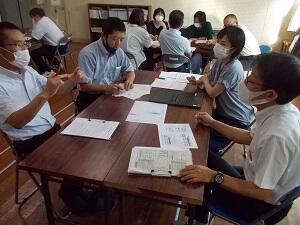 9月15日(水)の5校時に、研究授業を実施しました。校内研修の取組の一つで、平成30年度から、全ての先生方が年1回の研究授業を行っています。今回は、1年社会科、2年音楽科、3年理科・英語科の授業でした。本年度の研究の柱であるアウトプット及びICT活用が位置付けられた授業が展開されました。授業後のワークショップ型授業研究会も熱心に協議がなされました。