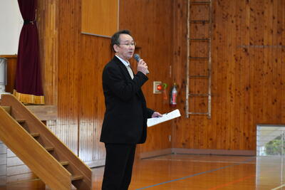式の前に、能登半島地震で被害にあった方々へ、全校生徒で黙祷をささげました。
