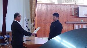 式終了後、中学校秋季体育大会 柔道競技 90kg超級 3位 猪ケ倉さんの表彰もありました。