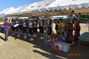 9月7日に開催された山之口地区どんどん祭りに、吹奏楽部が出演し、演奏しました。体育大会の準備終了後、すぐに練習を行い、会場へ移動し演奏するという、ハードスケジュールでしたが、素晴らしい演奏をしてくれました。