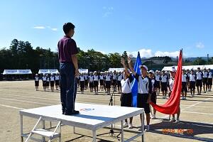 9月8日(日)に第73回体育大会が実施されました。台風の発生などにより、天候が心配されていましたが、晴天に恵まれ、全てのプログラムを予定通りに実施することができました。入場行進から開会式、競技や応援、閉会式まで、生徒は一生懸命に取り組んでくれました。笑顔と感動のある体育大会であり、これまでよりもレベルアップした体育大会となりました。来賓の皆様からも「素晴らしい体育大会でした」「生徒の姿に感動しました」などのお声をいただきました。