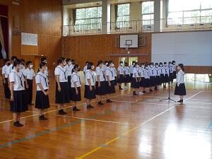 6月29日(水)に、都城地区中学校秋季体育大会の推戴式を行いました。各部キャプテンからの決意表明があり、生徒会から激励の言葉、学校長激励の言葉、選手代表宣誓があり、最後に諸注意がありました。新型コロナウイルスの影響により、いろいろな制限や対策がとられて大会が開催されます。感謝の気持ちを忘れず、ベストを尽くしてきてください。健闘を祈ります。