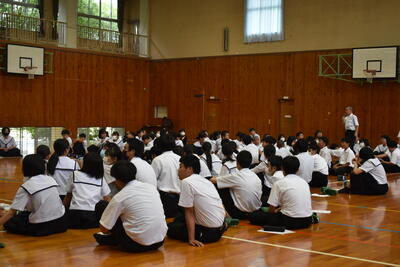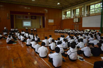 総会では、山之口中の新しい取組としての「小中学校の交流」と「校則の見直し」についてのニつの議題で、互いの意見を交わしました。