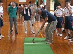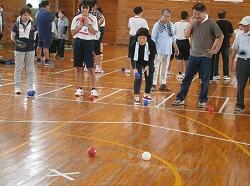 9月19日(金)の午後、高城中学校の体育館で、中学3年生が地域にお住まいの敬老者の皆さんを招いて交流会を開催しました。年齢の壁を越えて楽しめるよう、今回はスカットボールとボッチャを行いました。生徒と敬老者が混合チームを組み、他チームと熱戦を繰り広げました。スカットボールでは、ボールが枠の中へ転がるたびに歓声が上がり、運も味方につけて楽しんでいる様子がうかがえました。