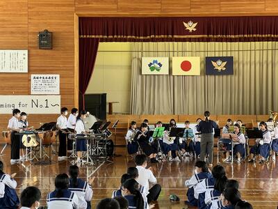 県立高校一般入試も終わり、3年生は残すところ登校が4日となりました。今日から卒業式に向けて飮練習も始まりました。