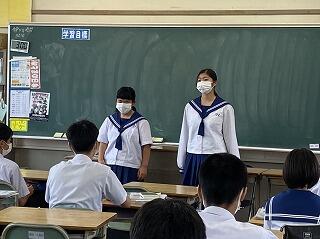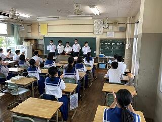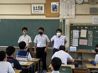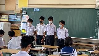 7月8日(水)は、県中学校総合体育大会兼都城地区部活動合同競技(交流)会並びに県中学校吹奏楽サマーコンサートに出場する生徒たちの推戴式を行いました。放送を使い各教室で本番に向けての決意表明を聞きながら拍手で激励しました。特に3年生は、中学校に入学してから今日まで練習してきたことを発揮できる最後の場を得ることができました。今、その時までの時間がとても大切に思えているでしょう。校長先生や生徒会役員からの「激励のことば」も力に変え、堂々とプレーをしてくれることを楽しみにしています。