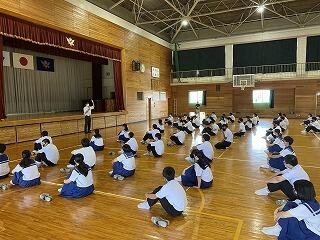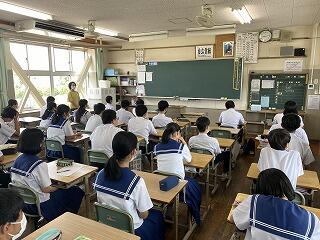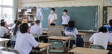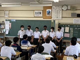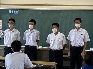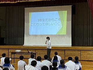 6月30日は、3年生向けに地域内にある県立高校について説明会を行いました。都城泉ケ丘、都城西、高城、都城農業、都城工業、都城商業の先生方から直接、各高校の目標や学習内容の特徴、卒業後の進路状況を聞きました。また、高校での生活についてもイメージしやすいように映像なども交えてわかりやすく話していただきました。7月中旬ごろからオープンスクール(一日体験入学)が始まります。今度は、自分で希望の高校に出かけて行き、自分の高校生活を思い描きながらその高校のことを調べることになります。最後は自分の責任で受験校を決めるという覚悟を持ってほしいものです。