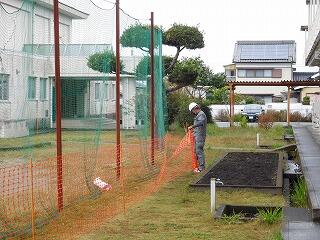 まずは、工事区域内に立ち入らないための、オレンジフェンスが立てられました。