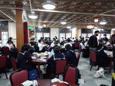 受験を控えた3年生に保護者の方々が「合格祈願うどん」を振る舞ってくださいました。生徒も合格に向かってさらに努力してくれると思います。