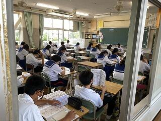6月25日(木)は、全学年の歯科検診が行われました。感染症対策のため、生徒だけでなく、お医者さんや看護師さんもフェイスシールドや防護服を着用しての検診となりました。ようやく全部の定期健康診断が終わり、養護教諭の先生も一息されたようです。お疲れさまでした。この後、検診結果が返されます。長期休業を利用して早めに治療しましょう。