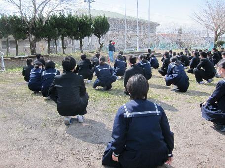 2月17日()は、全校生徒・職員で避難訓練を行いました。火災報知機の発報及び緊急放送で火災が発生したことを認知しました。そのあとは窓を閉め適切に避難経路を選び、安全な運動場に避難しました。業者の方には消火活動の留意点や消火器の使い方を教わりました。学校だけでなく自宅や外出先でも様々な災害に遭遇するかもしれません。その時、慌てずに行動できるようにこの訓練を生かしてほしいものです。