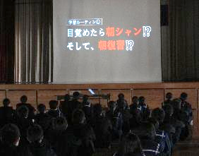 2月19日()は、生徒会執行部が1・2年生を集めて、生徒集会を開催しました。内容は、「テスト直前!勉強の仕方を考えよう~みんなの学習ルーティン~」です。ポイントは、6つありました。1月24日から1・2年生は学年末テストです。是非、一つでも取り入れて学習効果を上げてほしいと思います。