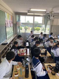 10月23日(金)は、「お弁当の日」でした。1学期の第1回お弁当の日は、臨時休校になったため、計画は立てたものの実施することはできませんでした。今回、実際に自分でお弁当を作って食べることは初めてとなりました。テーマは「秋の味覚を取り入れよう」でした。収穫の秋ですから、食材も豊富で選ぶのが大変ではなかったでしょうか。お弁当の写真を撮影してもらった後、おいしくいただきました。もちろん完食でした。