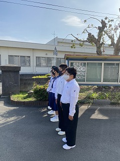 「あいさつの質を高める」ことを目的に、本日より生活委員会が中心となって「あいさつ運動」を開始しました。7時30分から7時45分まで1年2組の生徒が校門に立って大きな声であいさつをしてくれました。
