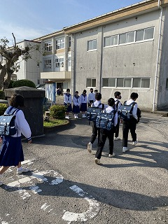 3月11日(木)は、3年生が各地区の公民館を清掃しました。はじめに公民館長さんから説明や指示を聞き、感謝の気持ちを込めてていねいに作業をしました。最後は公民館長さんにお礼を述べ、大変喜んでもらいました。コロナ禍で地域の行事に参加ができなかったのですが、今回の取組は住み慣れた地区に目を向けるよい機会にもなりました。
