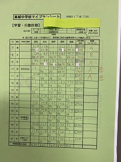 予定と実際に学習した時間が記入してあり、工夫がみられます。