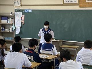 9月23日(水)は、地区秋季体育大会に出場する選手の推戴式を行いました。夏の総合大会と同様、各学級に分散し、各競技の決意を放送を通して聞き、拍手をしながら激励を行いました。出場するのは、女子バレーボール、女子バスケットボール、男子バスケットボール、女子ソフトテニス、男子ソフトテニス、女子ソフトボール、サッカー、野球、バドミントン、水泳(県大会)、柔道、卓球の競技です。応援をよろしくお願いします。