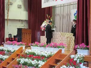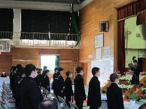 新型コロナウィルス感染症対策のため臨時休業中ではありましたが、3年生は、3月16日(月)に卒業式を行いました。来賓や在校生には出席を控えていただいたり、時間を短縮したりしながらも創意・工夫を凝らし、思い出に残る卒業式を行うことができました。校長先生の式辞の中にあった「一期一会」の気持ちで、これからもたくましく邁進していってほしいと思います。卒業生の皆さん、本日は誠におめでとうございました。