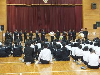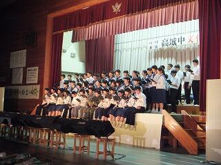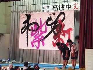 11月23日は、高城小学校で、高城地区文化・芸術フェスティバルが行われました。高城地区の小・中・高生が9つのプログラムで発表しました。高城中からは吹奏楽部が「Jポップ2019」の演奏を、また、3名の生徒が「オーストラリア海外派遣報告」と、「英語暗唱弁論The Bear and Two Travelers」を行いました。どの発表も堂々とした態度で見応えのあるものでした。