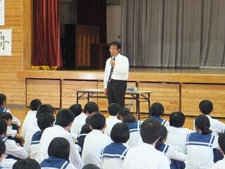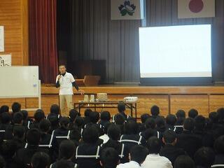 9月20日(木)、高城生涯学習センターにて、都城ぼんち地域振興株式会社・高城スポーツクラブ主催による講演会が開催され、高城中学校と有水中学校の生徒が参加しました。元日本代表石川直宏氏(現 FC東京クラブコミュニケーター)を講師として、ユーモアがあり楽しい雰囲気の中、自分の体験談を中心に話していただき、生徒にとって、今後の進路選択をする際、役に立つと思われました。ありがとうございました。
