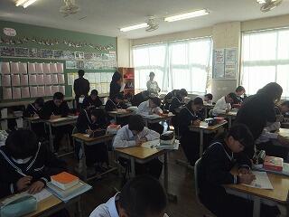 1月24日(木)午後、新入生入学説明会を開催しました。来年度、本校に入学予定者の小学校6年生が参加しました。はじめに中学校の授業を参加しました。その後、生徒会役員が高城中学校のよさや行事等を説明しました。入学を楽しみに待っています。