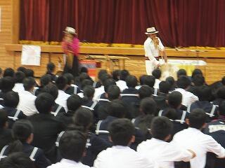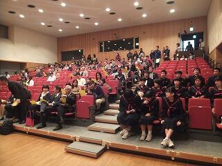 10月15日(火)は、高城高校で、芸術文化体験プログラム事業として古典芸能公演が開催されました。その中高連携の一環として高城中学校の全校生徒も一緒に鑑賞することができました。