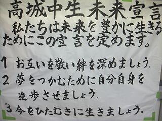 発表する態度・聞く態度もすばらしく、真剣に生徒総会に臨んでいました。決定された事項については、しっかりと取り組んでください。そして、よりよい高城中学校を目指しましょう。