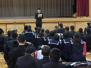 4名の生徒が、2学期の反省やこれからの抱負を述べました。4名とも原稿等を見ずに、前を向いて堂々とした発表でした。