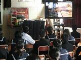 事前にとっていたアンケート結果について考えたり、ミニ劇を通してその時の対応について考えたりしました。また、言葉やその場その場の対応について考えさせられる「絵本」をスクリーンに映し出し、読み聞かせで紹介しました。