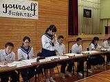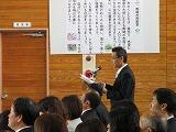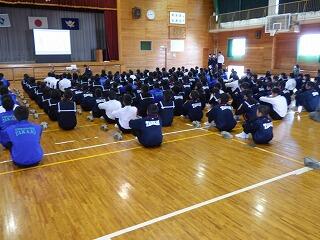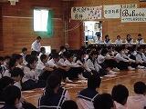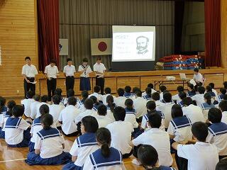 はじめに「立志式」を行い、一人づつ立志の誓い(座右の銘)を発表したり、代表生徒が作文を発表するなどしました。