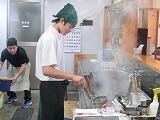 中学校に入って初めての調理実習でした。メニューは、「しょうが焼き」。つけ合わせに、ピーマンともやしの炒め物をしました。調理実習になると、みんないきいきとするものですね。普段から家でやってる人は、手際よくどんどん作業ができますね。一方で、包丁の扱い方が危ない人も・・・。また、生肉を手で触るのに抵抗を感じる生徒も最近は多いのですが、つけ汁につけた豚肉をずうっと触っている人も・・・(それは、触りすぎ!と言うくらい)。ショウガをすりおろすことも、はじめてのことでしたね。しょうが焼きは、手軽にできる一品なので、家でもぜひまた自分で作ってもらいたいです。普段は、部活動などで台所に立つ機会がなかなかないかもしれませんが、時間を見つけて料理を作ってみてください。年末・年始のお手伝いも積極的にしてくれるといいですね。