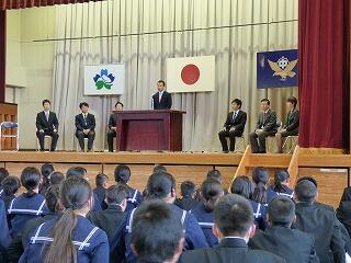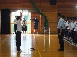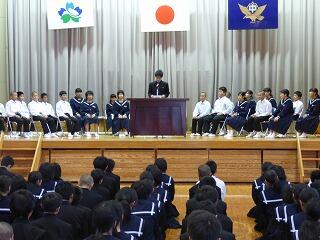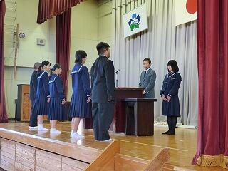 今年1年間の生徒会を引っ張っていくリーダーの任命です。それぞれすばらしい生徒たちです。さらにしっかりした高城中学校を創造してくれるものと期待しています。