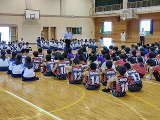 各種の表彰や、ライオンズクラブからの箒の贈呈式等を行った後、終業式を行いました。