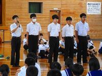 先日宮崎県中学校総合体育大会と宮崎県吹奏楽コンクールに出場する部活動に対して推戴式が行われました。各部活動から大会に向けての意気込みの発表がありました。どの部活動も支えてくれた周囲への感謝の言葉もありました。都城地区の代表として精一杯頑張ってきてください。