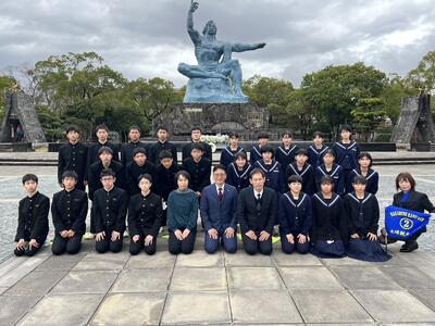 昼食後は、一日目の大きな行事、平和公園で平和式典を行い、千羽鶴を奉納しました。原爆資料館で原爆の恐ろしさ、平和の大切さについて改めて考えさせられました。
