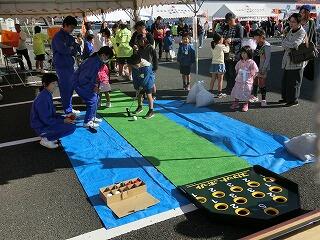すばらしい秋晴れの下、高城生涯学習センター駐車場西側にて、ボランティア福祉祭りが開催されました。バザーコーナー、おしるこコーナー、ふれあいコーナー(ゲーム)、ヨーヨーコーナー、綿菓子コーナー、食育・試食コーナー、そして、お楽しみ抽選会のチケット配付や抽選と賞品渡しなどに、中学生が大活躍しました。