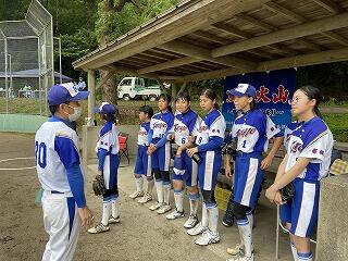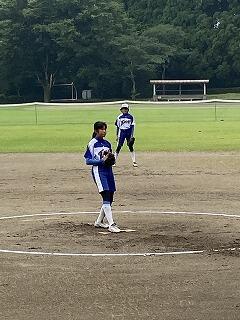 写真は、ソフトボール部と軟式野球部の試合中の様子です。