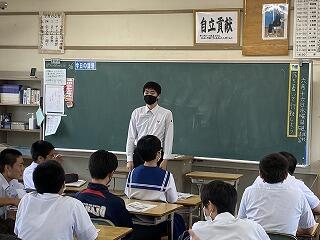 今回は、都城東高校の3名の先生方に来校していただき、受験生としての心構えや中学生として身に付けてほしい力についての講話をしていただきました。