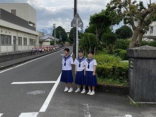 今日は、2年生の女子4人が大きな声であいさつ運動を行ってくれました。